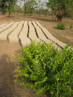 Once there, we were excited to see that the women of the Gushie Collective had been busy making cement bricks by hand. There was a field of bricks and the outline of an amazing storage building, 16′ by 60′. OK, the roof was open to the elements, there was no front door, but we nearly wept when we drove up and saw the reality of what we have been plotting and planning for months. We got to work to insure that before we left there would be a place where the women could store their crops and lock the door to keep them in.